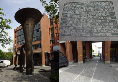Eine Gedenktafel für Georg Elsner am Ort des Attentats