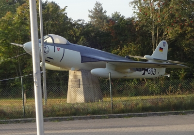 Eine Sea Hawk vor dem Flugzeugmuseum