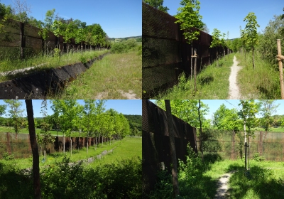 Ein Teil des ehemaligen Grenzzauns zusammen mit 2 Baumreihen